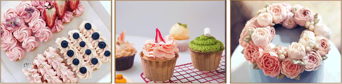裱花基本功、花卉、巧克力配件、各式整款蛋糕为主